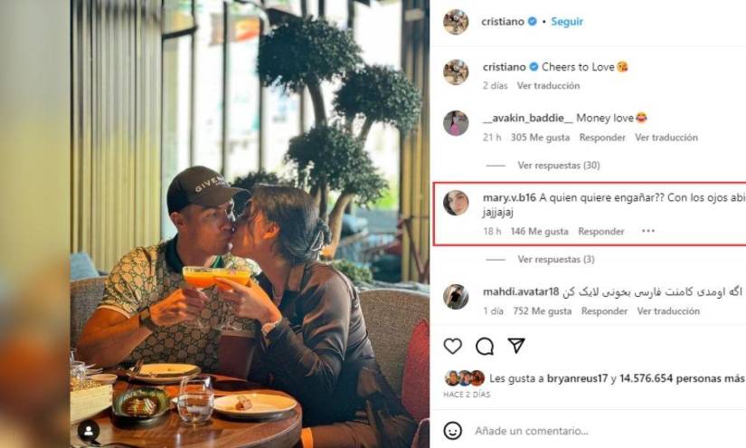 Esta semana, CR7 quiso acabar con los rumores de su relación haciendo uso de sus redes sociales, específicamente Instagram, donde compartió una romántica foto besando a la modelo. Junto a la imagen, escribió: “Brindando por el amor”. Con esto, sin dudas, Cristiano quiso acallar todo lo que se viene diciendo; sin embargo, un detalle en la fotografía hizo que los internautas le dieran la vuelta al mensaje.