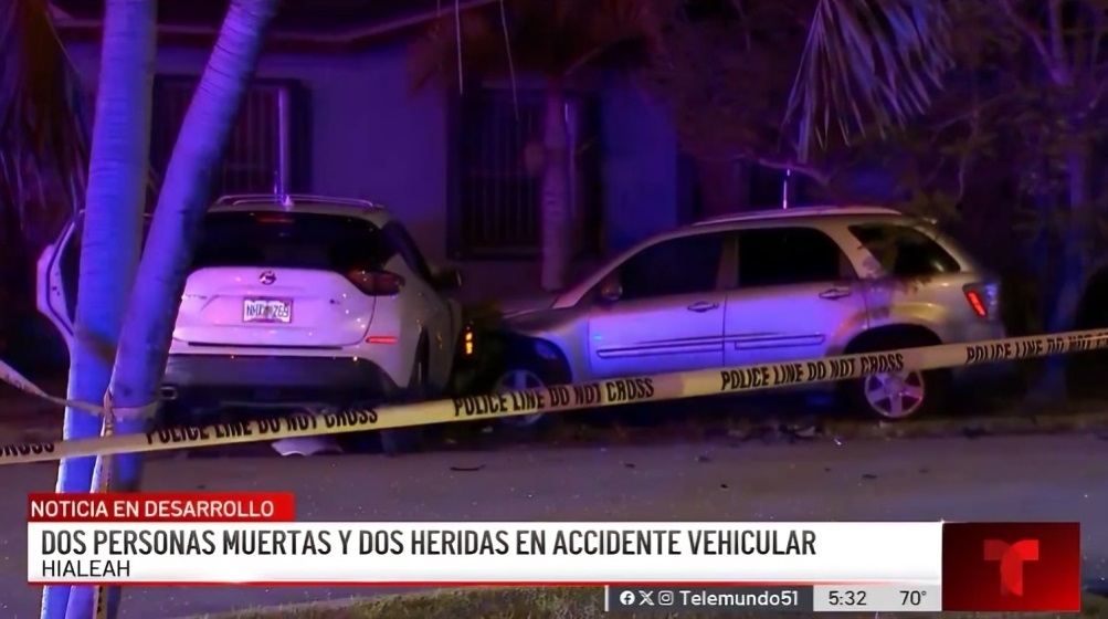 Un accidente de tránsito ocurrido durante la noche de ayer martes en el sureste de Hialeah provocó la muerte de dos personas, mientras otras dos terminaron con lesiones de consideración, informó Telemundo 51.