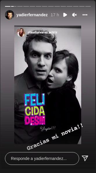 En sus historias de Instagram, el actor compartió las felicitaciones que le hicieron llegar en su día especial las personas más allegadas, entre ellas su novia la también actriz Claudia Álvarez. “Gracias, mi novia”, escribió Fernández.