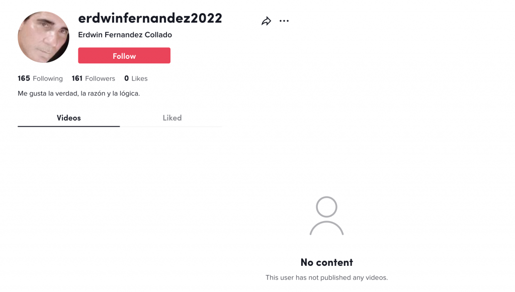 Dejando el link de su cuenta en TikTok se despidió el artista, hasta el momento tiene 161 seguidores, pero ningún video publicado.