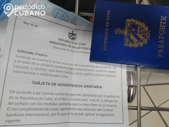 Cuando arriban a la terminal, a cada pasajero se le entrega una tarjeta de advertencia sanitaria donde dice que el no cumplimiento de las medidas representa una violación al control sanitario internacional y puede haber sanciones según la legislación vigente.