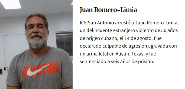 La semana pasada, otro cubano fue arrestado bajo este mismo operativo. Eduardo Fundora Setién, de 59 años, fue detenido en Nueva Orleans, Luisiana, por motivo de sus antecedentes de agresión doméstica de segundo y tercer grado.