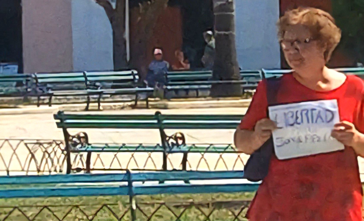 Tras la noticia del arresto del humorista y escritor Jorge Fernández Era, la profesora, ensayista y editora cubana Alina Bárbara López Hernández ejerció su derecho constitucional de manifestación pacífica y pidió la libertad de su colega en el Parque de la Libertad en la ciudad de Matanzas.