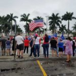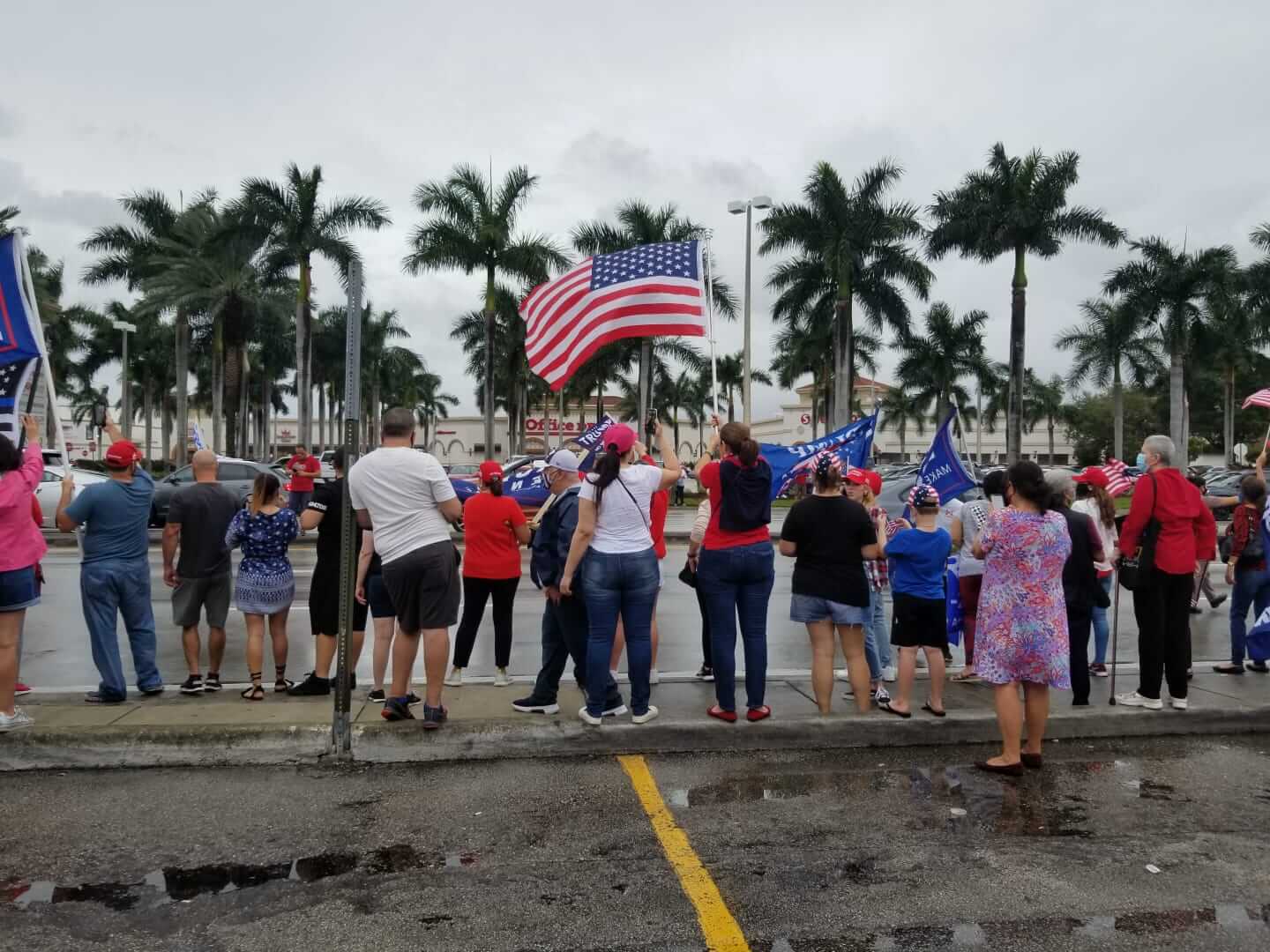Florida fue uno de los estados más fuertes de Trump desde las elecciones pasadas, gracias principalmente al apoyo de la comunidad cubana. Entre la multitud se aprecian varias banderas cubanas y venezolanas.