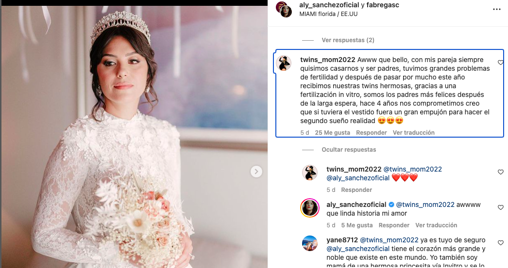Precisamente la ganadora dejó en comentarios una hermosa historia de vida en la que contó que ella y su “pareja siempre quisimos casarnos y ser padres, tuvimos grandes problemas de fertilidad y después de pasar por mucho este año recibimos nuestras twins hermosas, gracias a una fertilización in vitro, somos los padres más felices después de la larga espera, hace 4 años nos comprometimos creo que si tuviera el vestido fuera un gran empujón para hacer el segundo sueño realidad.”