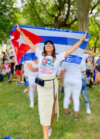 Miles de cubanos se concentraron este 25 de julio en Washington frente a las puertas de la casa presidencial estadounidense, para respaldar el alzamiento que ha hecho el pueblo cubano por su libertad. Entre los manifestantes se encontraban famosos cubanos que residen desde hace años en EEUU, entre ellos la también influencer Aly Sánchez, quien coincidentemente cumplió este fin de semana catorce años que abandonó Cuba.