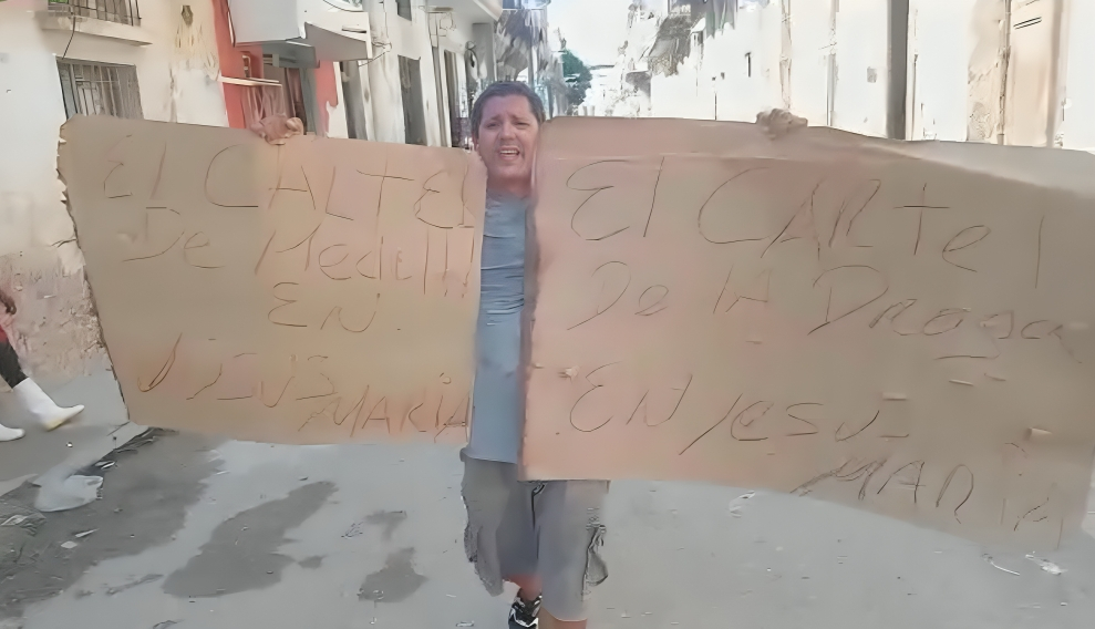 Betancourt Pérez salió a la vía pública con dos grandes carteles en mano denunciando la comercialización de narcóticos en la calle Gloria, entre Carmen y Rastro, donde, según él, se vende “químico, crack y heroína” sin que las autoridades tomen medidas.