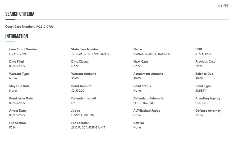 La documentación consultada por nuestro medio, precisa que Bolufe Izquierdo se encuentra a la espera de su audiencia judicial, con una fianza establecida en $2,500. Actualmente se encuentra bajo custodia del Servicio de Inmigración y Control de Aduanas de Estados Unidos (ICE).