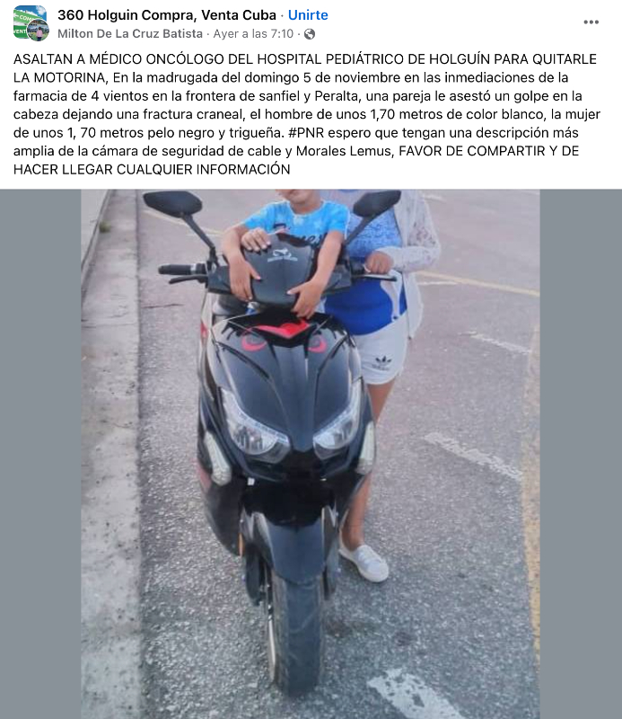 En las primeras horas de este domingo 5 de noviembre, un médico oncólogo del Hospital Pediátrico de Holguín fue víctima de un violento asalto.