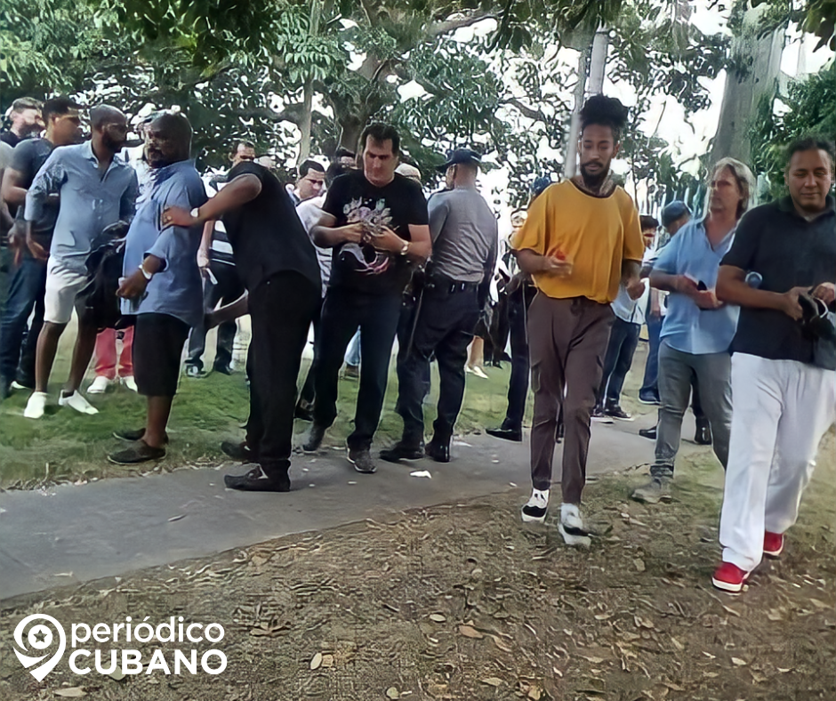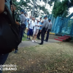 Por otro lado, las fotografías compartidas, muestran como, de forma autoritaria y represiva contra los cubanos, la policía les realizó el cateo y la revisión de sus pertenencias a la entrada de la instalación.