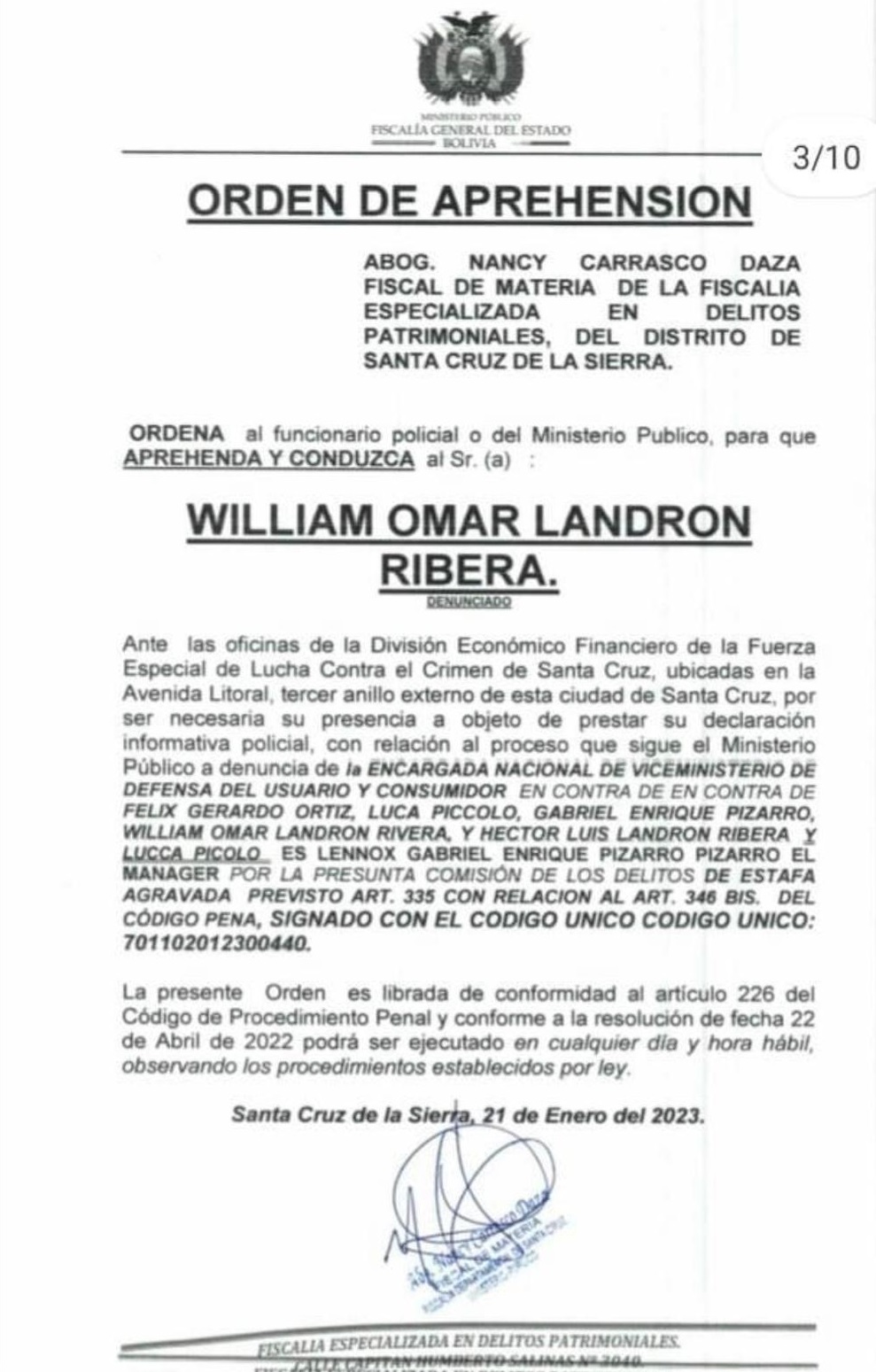 Las complicaciones para el artista y su staff continuaron en Santa Cruz. El Ministerio Público de este departamento también emitió una orden de privación de la libertad contra los mencionados por la misma situación.