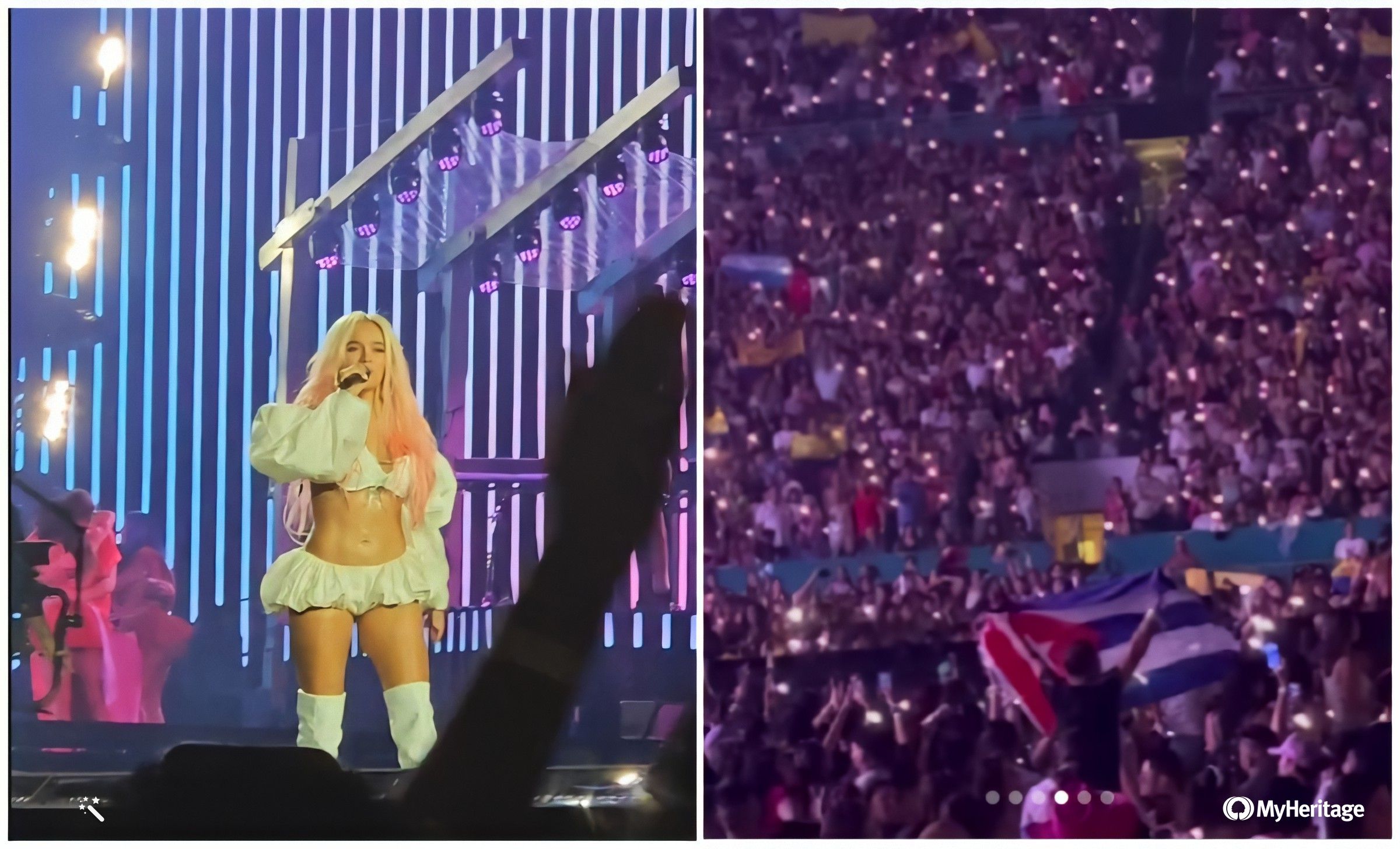 Uno de los que no se perdió este show fue el influencer Carnota, quien compartió en su cuenta de Instagram la efervescencia del momento, con videos y fotos que capturaron la energía de la noche. En uno de los registros visuales, se aprecia a uno de los asistentes desplegando una gran bandera de Cuba, un acto que encontró eco en muchas otras personas en el público, quienes mostraron su identidad nacional con banderas de diversos países.