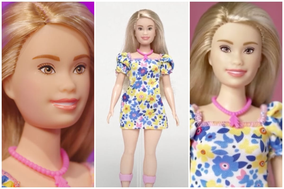 La Barbie Fashionista con síndrome de Down también lleva aparatos ortopédicos rosados en sus tobillos y pies, pues algunos niños con este trastorno genético usan este tipo de implementos para sostener sus pies y tobillos.