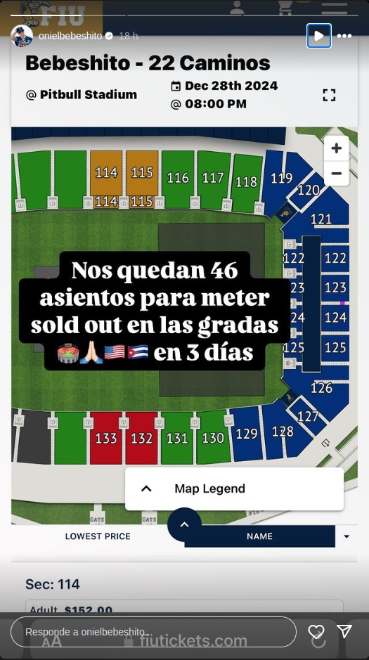 El reguetonero cubano Oniel Ernesto Columbie Campos, conocido artísticamente como Bebeshito, se presentará por primera vez en Estados Unidos este 28 de diciembre con un concierto en el Pitbull Stadium de Miami. Aunque el evento ha generado entusiasmo entre sus seguidores y ha vendido más de 10 mil entradas en cuestión de horas, el artista no llenará el estadio.