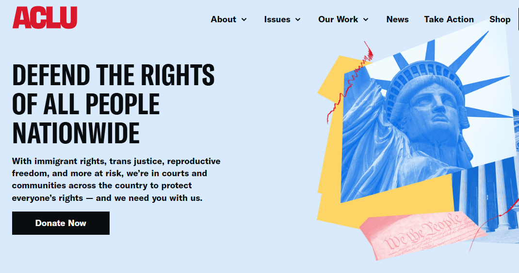 La ACLU es una de las organizaciones de derechos civiles más influyentes del territorio estadounidense. (Captura de pantalla © Web – ACLU)