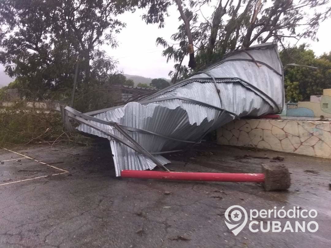 En imágenes enviadas a la redacción de Periódico Cubano se observa que un gran árbol de esta oriental provincia quedó totalmente levantado de sus raíces pese a que los vientos de tormenta tropical no superaron los 100 kilómetros por hora. De igual forma, débiles cubiertas de viviendas y centros estatales fueron derribados por el efecto de los vientos.
