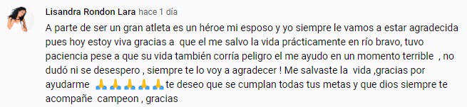 El piragüista también compartió cómo salvó la vida de la joven cubana Lisandra Rondón Lara, que tuvo problemas para cruzar a nado el Río Bravo. “Empecé cruzando adelante y de repente escuché un alboroto; cuando miré hacia atrás, era Lisandra, que estaba aterrorizada. Di la vuelta, la ayudé y salimos juntos”, recordó.