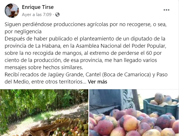 El periodista también recuerda como llegan denuncias desde La Habana, donde en los municipios de la periferia de la capital se está perdiendo el 60% de la producción de mangos.
