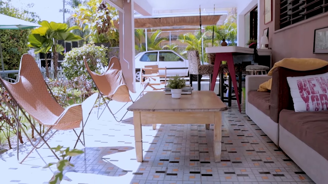 La casa cuenta con un amplio jardín decorado con mobiliario ideal para disfrutar del aire libre y una piscina desmontable de forma circular. Al ingresar, los visitantes son recibidos por un cómodo carport con capacidad para un auto, seguido de un espacioso portal en forma de “L” que conecta con el jardín y ofrece un espacio perfecto para relajarse.