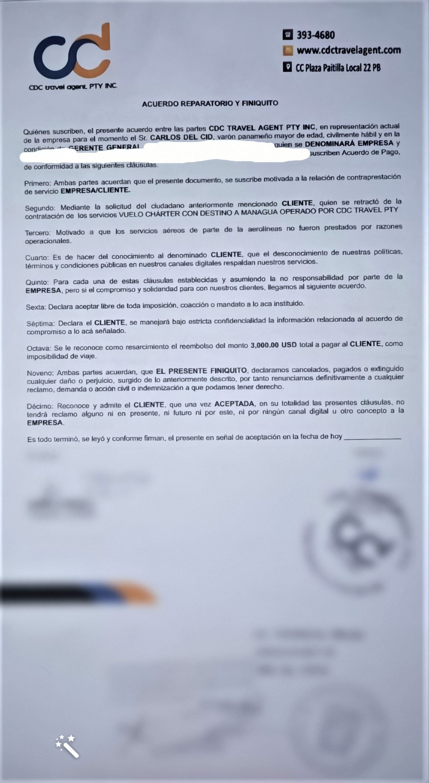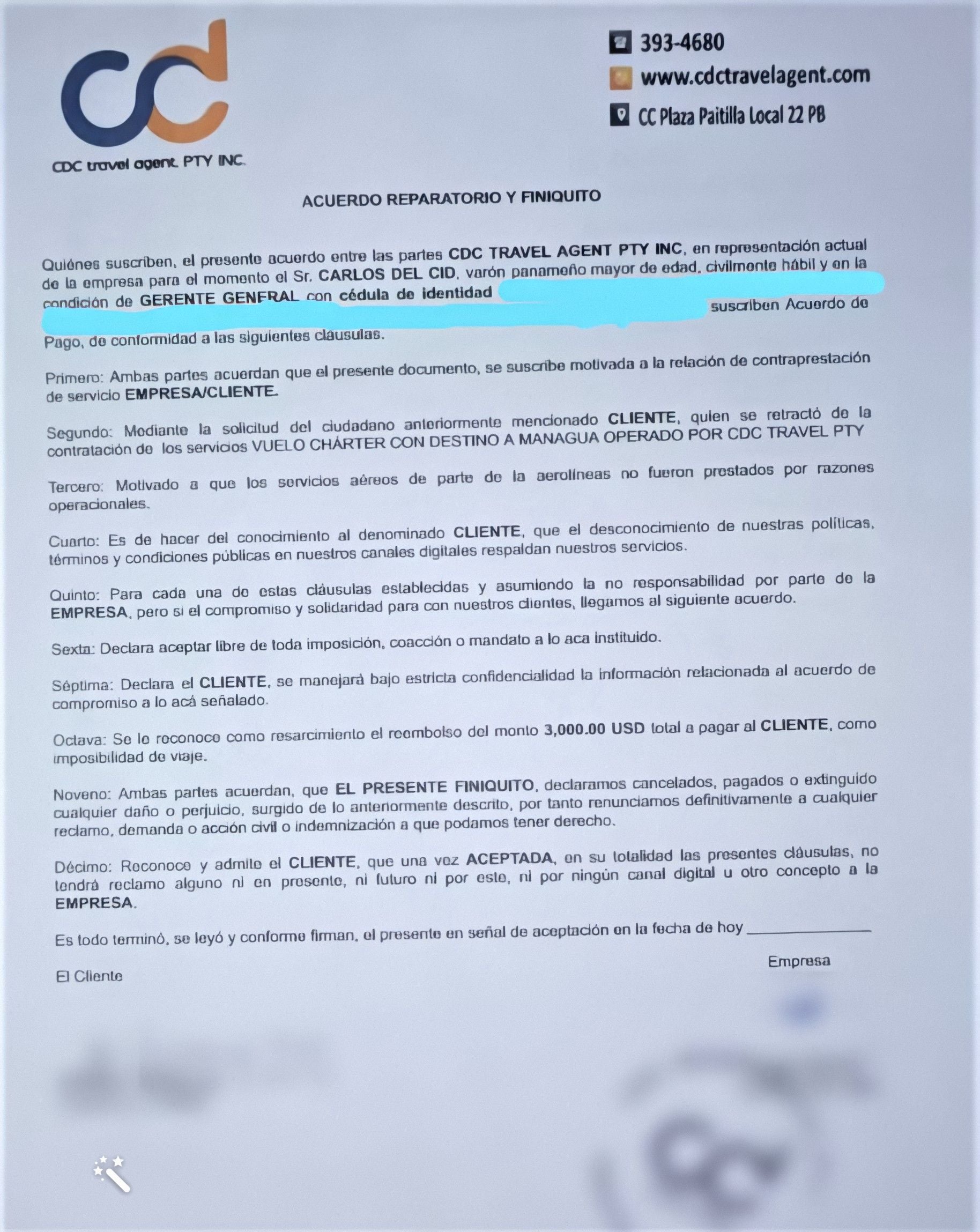 Periódico Cubano ha obtenido declaraciones exclusivas de Karol Lay, quien compró tres pasajes para sus familiares cubanos y de las pocas que ha llegado a un acuerdo de reembolso con la agencia administrada por el Sr. Carlos Iván del Cid Mora, no sin antes tener que recurrir a un abogado para que le llevase el caso.