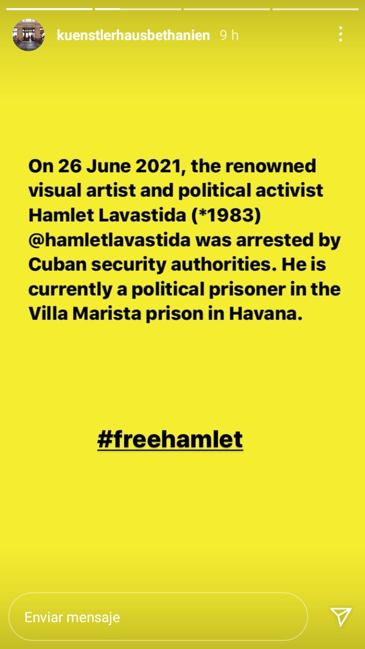 Por otra parte, la declaración del Künstlerhaus Bethanien muestra la resonancia que ha tenido el caso de Hamlet Lavastida, que ha logrado llegar al extranjero debido a todas las denuncias de activistas y artistas que se han solidarizado.