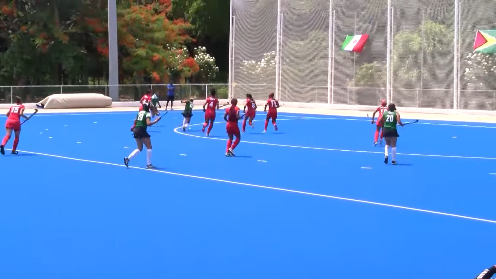 El hockey sobre césped es un deporte de equipo que se juega en un campo de hierba sintética, donde dos conjuntos de 11 jugadores cada uno intentan llevar una pelota a la portería contraria utilizando palos de madera o materiales compuestos.