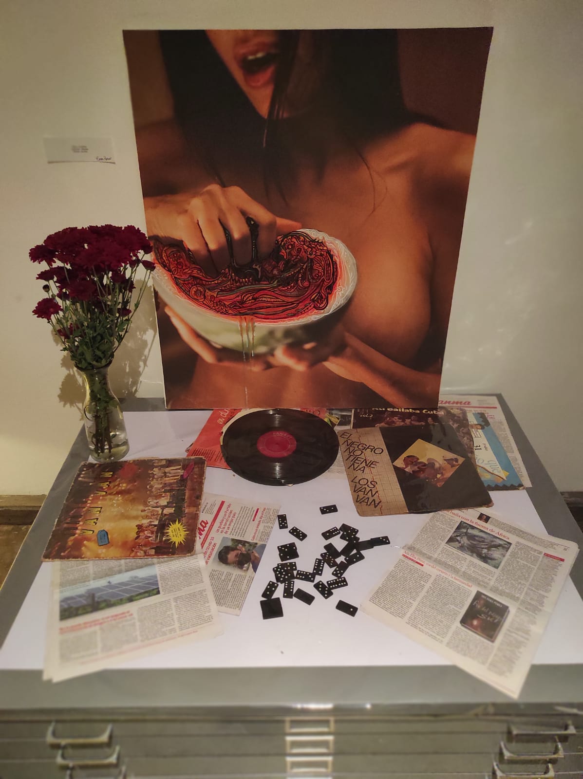 El espacio escogido en esta ocasión fue una casona de dos plantas, ambientada con cuadros expuestos (que también estaban a la venta) y elementos de la cultura cubana como el dominó, recortes de periódicos, carteles y las famosas sábanas blancas que “cuelgan en los balcones”. Una experiencia totalmente inmersiva que te traslada a esa Isla que es la más grande del Caribe.