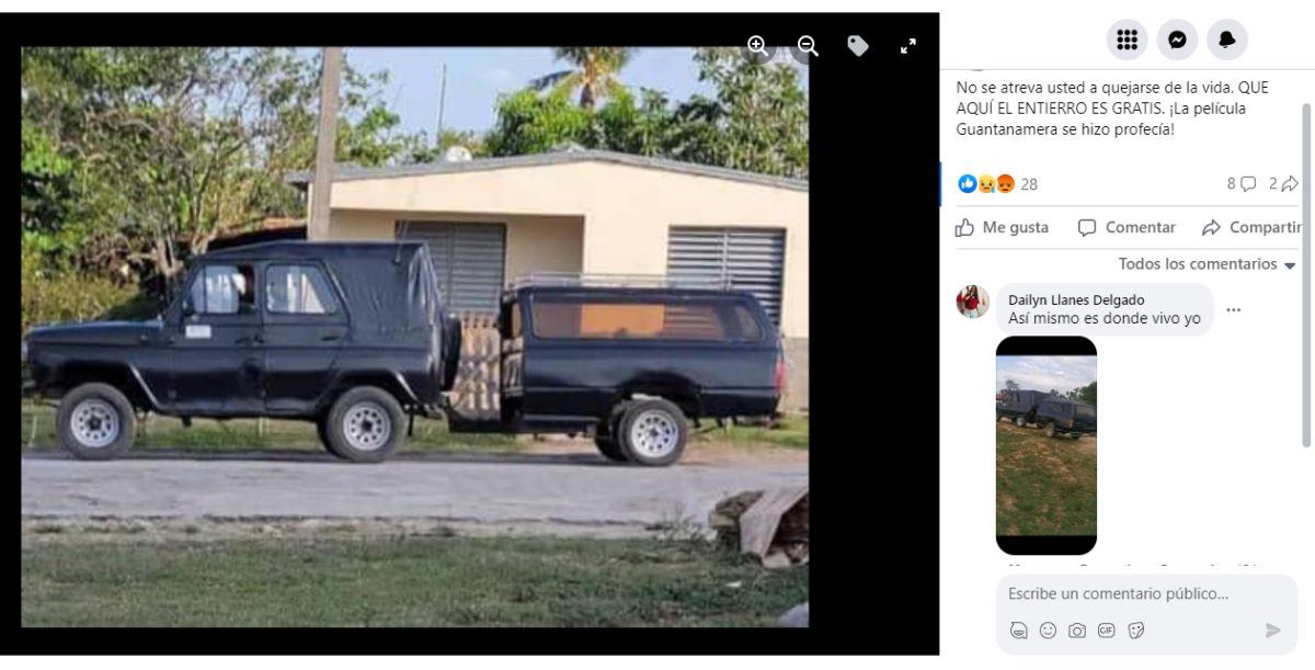 Las redes sociales se han inundado de fotos de Sancti Spíritus con carros militares pintados de negro, que tiran de un pequeño trailer que no es más que un auto recortado donde introducen los ataúdes de los fallecidos, justo al estilo de la cinta de 1995.