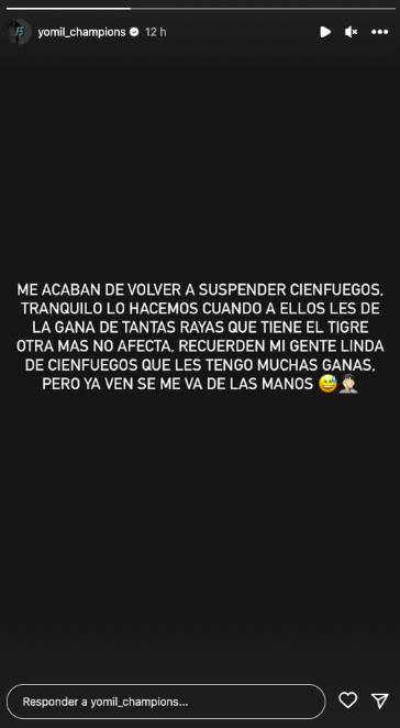 Con un tono directo, el artista expresó a sus seguidores cienfuegueros: “Recuerden mi gente linda de Cienfuegos que les tengo muchas ganas, pero se me va de las manos”.