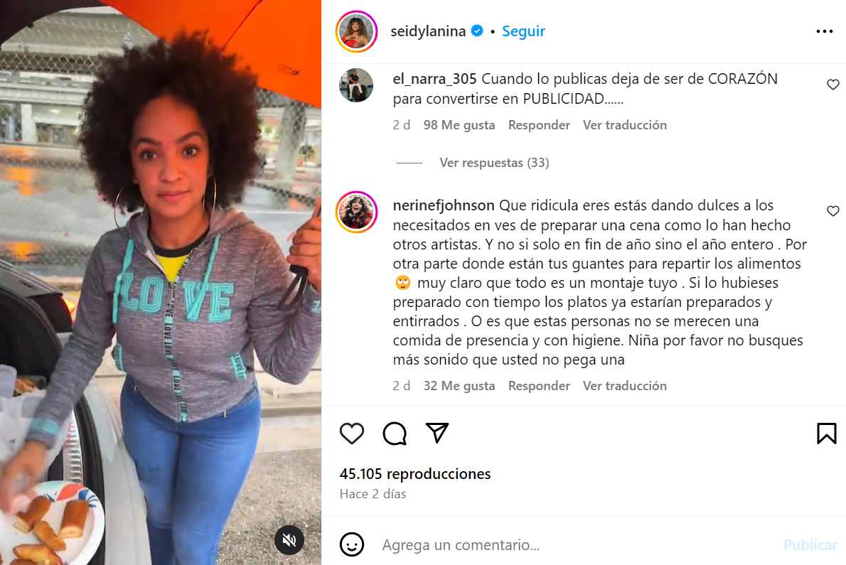 Algunos le expresaron su descontento y cuestionaron el motivo detrás de compartir este momento de caridad en Instagram. Comentarios como “Cuando lo publicas deja de ser de corazón para convertirse en publicidad”, “Si lo publicas no vale. Buscas aceptación y popularidad” y “Lo que se da y se publica es publicidad, no caridad” inundaron la publicación de Seidy.