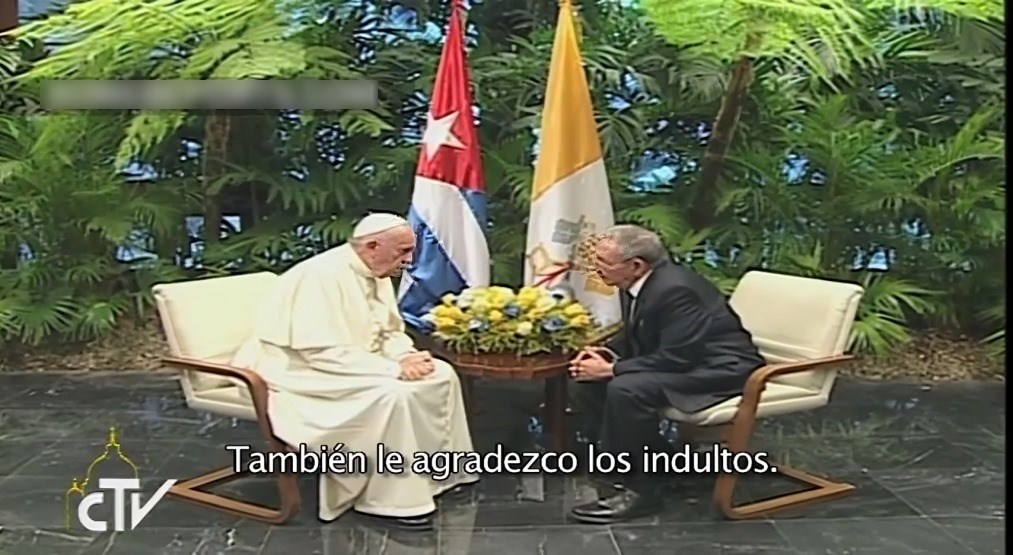 En su primer viaje a Cuba, Francisco sostuvo un encuentro privado con el dictador Fidel Castro. Según el Papa, conversaron sobre temas ambientales y sobre su encíclica Laudato Si’, pero no abordaron la represión contra la Iglesia. Francisco explicó que el arrepentimiento es un asunto íntimo y que prefirió enfocarse en mensajes de unidad.