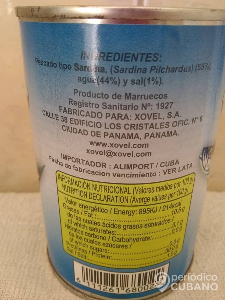 El gobierno cubano importa sardinas enlatadas originales de Marruecos y comercializadas en Panamá para venderlas en el mercado interno. La lata de sardinas “La Gallega” tiene un costo de 25 pesos cubanos y está reservada para los casos de dietas médicas.