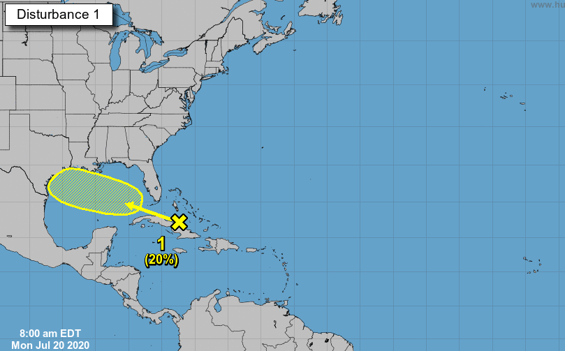 Según los expertos, el sistema tiene un 20 por ciento de probabilidad de experimentar un cambio a mitad de semana, situación que provocaría fuertes lluvias y un clima vinculado a la actual temporada de huracanes.