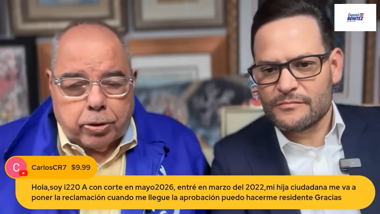 Uno de estos afectados y que tiene fecha de corte de inmigración programada para mayo de 2026, preguntó si puede regularizar su estatus mediante la petición de su hija, que es ciudadana americana. El abogado Wilfredo Allen, en conversación con el periodista Daniel Benítez, explicó el caso.