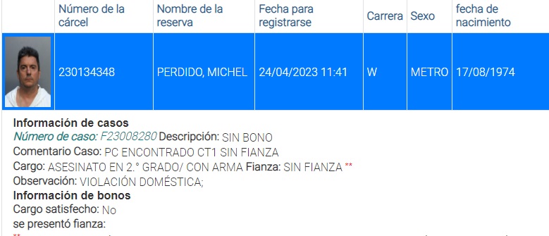 A este presunto homicida tampoco se le concedió el derecho a fianza, por estar sujeto a una causa probable de asesinato en segundo grado y portar un arma de fuego oculta.