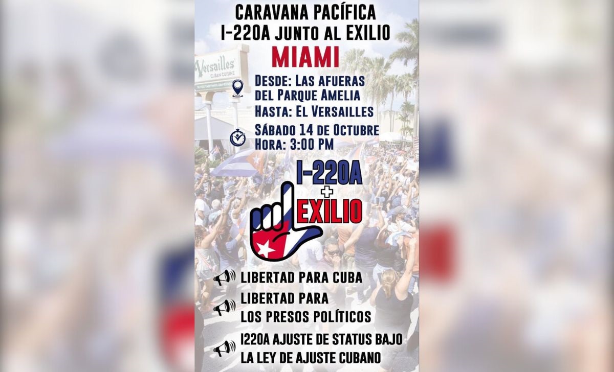 Cubanos portadores de un formulario I-220A, obtenido al ingresar a Estados Unidos, convocaron a una caravana pacífica en Miami para pedir un ajuste a sus estatus migratorios y también exigir la libertad de los presos políticos en la Isla.