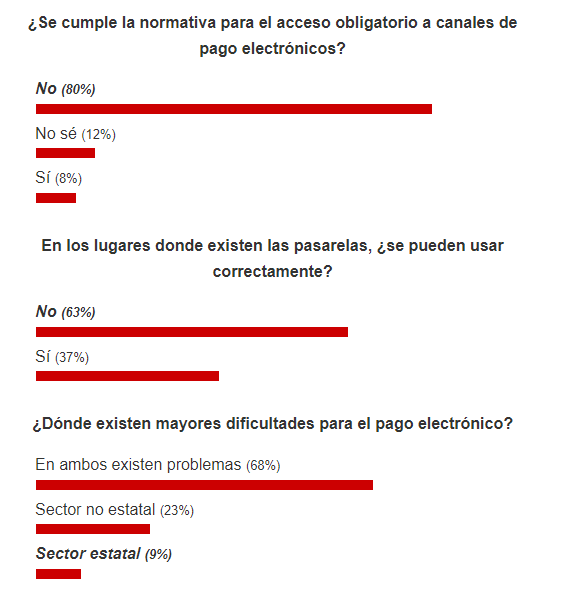 La encuesta mostró que incluso donde existen pasarelas de pago, un 63% de los usuarios encuentra imposible su correcto uso. Este dato no solo pone en duda la eficacia de la infraestructura existente, sino que también plantea interrogantes sobre la operatividad de los sistemas de pago electrónico, que se han tenido que implementar de forma acelerada tras la obligatoriedad de la bancarización.