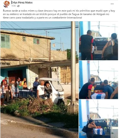 “Miren qué clase de descaro hay en este país. Mi tío Primitivo murió ayer y hoy, a su entierro, lo trasladan en un triciclo porque en nuestro pueblo no tiene carro para trasladarlo. A pesar de ser un combatiente internacional”, comentó el sobrino.