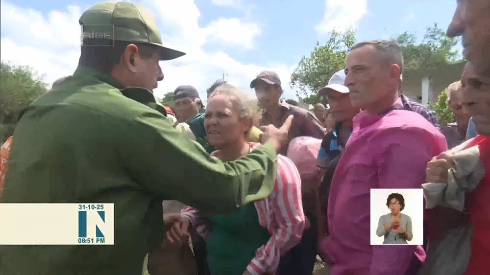 Un grupo de cubanos damnificados por el paso del huracán Melissa se aglomeró alrededor de una dirigente en el oriente del país para protestar por la falta de atención en estos momentos de emergencia.