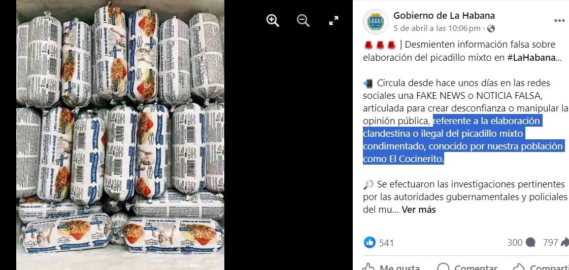 El reconocimiento llega días después de que esa producción de picadillo fuera vinculada con irregularidades en el proceso de fabricación. Rumores en redes sociales argumentan que en el mercado se vende dicha proteína elaborada a base de carne de perros y gatos que fueron sacrificados ante la escasez de carne de cerdo o res.