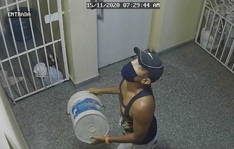 A la publicación adjuntó varias capturas del video donde se ve cómo el hombre carga con una cubeta para subirse y alcanzar los bombillos. Al sujeto no parece importarle el riesgo de tomarlos mientras están encendidos, ni tampoco la presencia de la cámara.