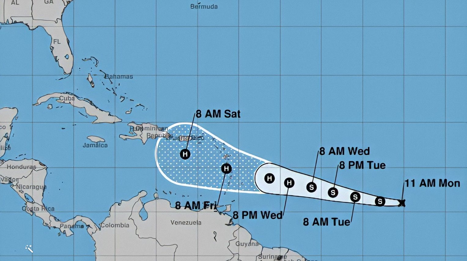 Si se llega a debilitar, tendería a seguir el flujo de los vientos alisios de este a oeste a través de las Islas de Sotavento, las Islas Vírgenes de EEUU, Puerto Rico, Haití y la República Dominicana.