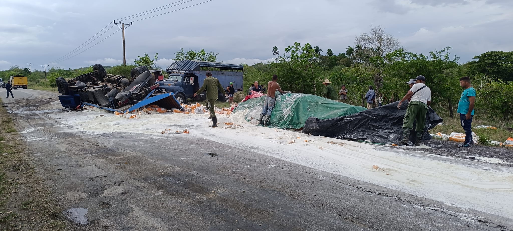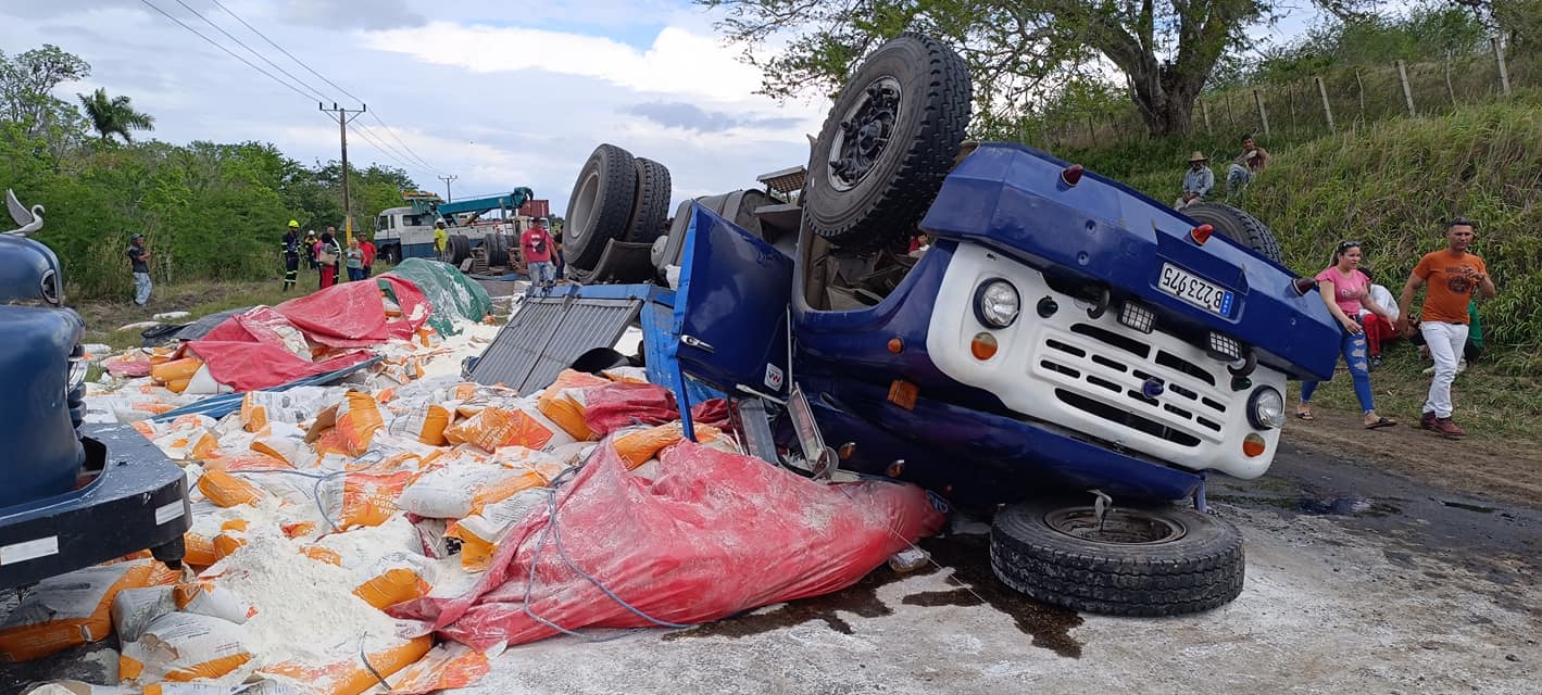 El accidente, ocurrido el pasado martes en la Carretera Central del referido territorio oriental, se habría provocado cuando el camión ZIL 130, de fabricación soviética, se volcó después de que explotarán sus gomas traseras. El vehículo, perteneciente al Ministerio de la Agricultura, con matrícula B223975 y cargado con harina de trigo, quedó totalmente con el chasis en el suelo y las ruedas en dirección al cielo.