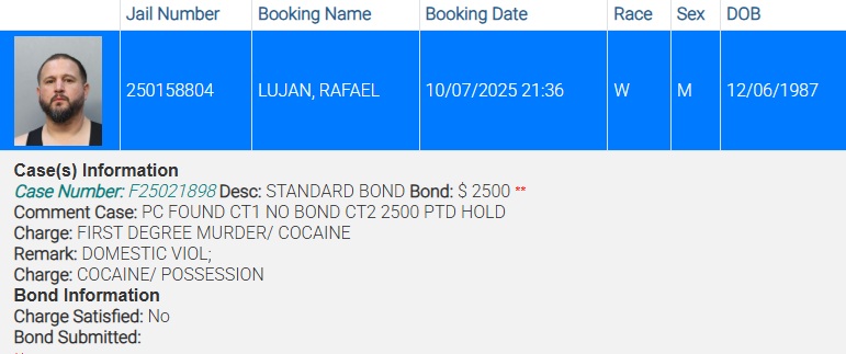 Luján fue arrestado por cargos de asesinato en primer grado relacionados con el suministro de cocaína y posesión de esta sustancia. A partir del miércoles por la tarde, Luján permanecía detenido en el Centro Correccional Turner Guilford Knight.
