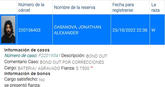 Los registros del condado de Miami-Dade indican que López y Casanova enfrentan el cargo de agresión agravada. El primer atacante en este caso cuenta con un historial delictivo en el que resaltan cargos por robo a viviendas, asalto armado y traición criminal.