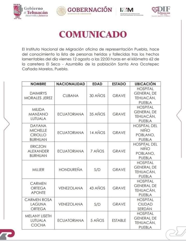 Al llegar los primeros auxilios al lugar, los sobrevivientes señalaron que en ese medio de transporte iban más personas que, al parecer, al no estar lesionadas, escaparon del sitio previendo caer en manos de los agentes migratorios del INM.
