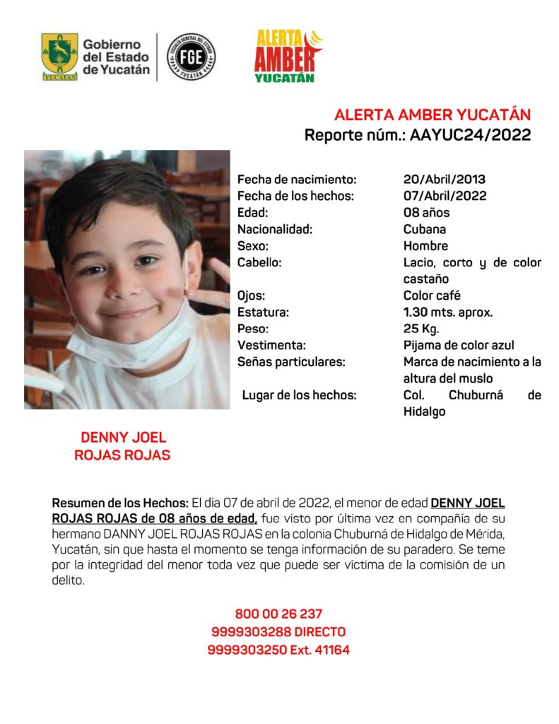 De acuerdo con medios de prensa locales mexicanos, desde el pasado jueves los hermanitos Denny Joel y Danny Joel Rojas Rojas, de ocho y 14 años respectivamente, desaparecieron en el barrio de Chuburná, situado en la parte noroeste de la ciudad de Mérida.