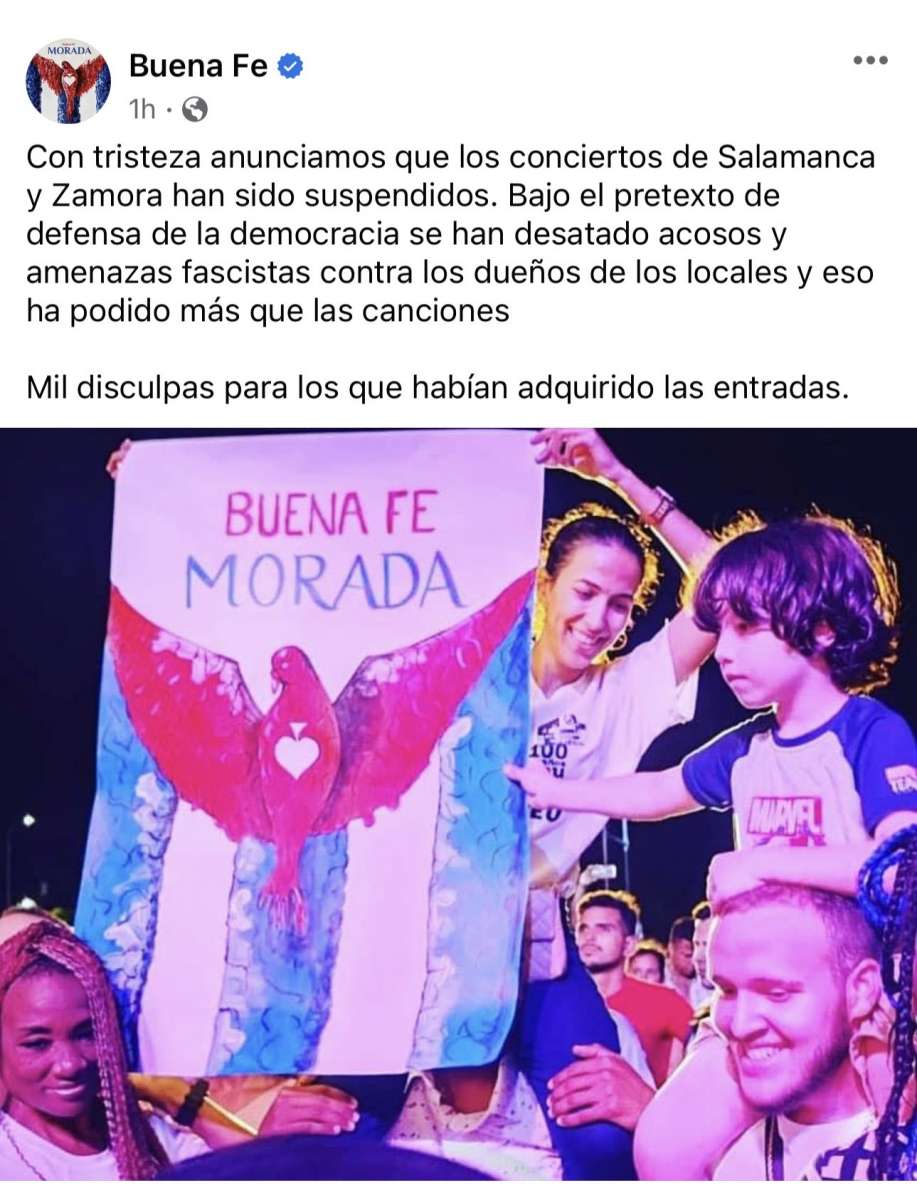 En un comunicado, la agrupación expresó su pesar por la suspensión de los conciertos en Salamanca y Zamora. En el texto, afirman que los dueños de los locales donde se iban a realizar los eventos han enfrentado acosos y amenazas por parte activistas cubanos.