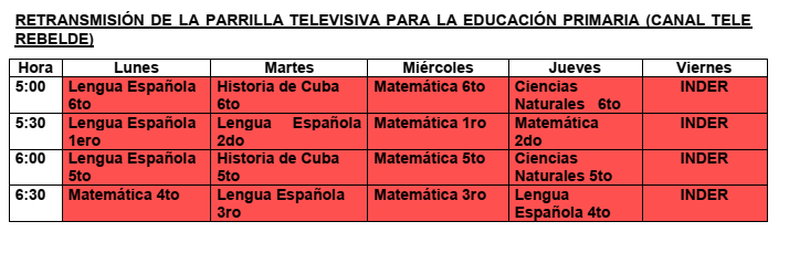 Desde ese lunes dará comienzo a un ciclo de una hora diaria para cada asignatura que se evalúa, es decir Matemática, Español e Historia de Cuba.