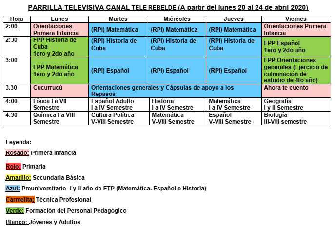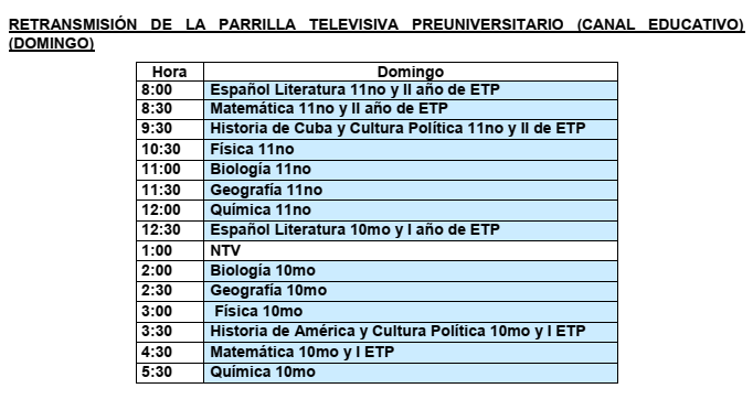 Para el caso de los estudiantes de preuniversitario que se preparan para las pruebas de ingreso a la educación superior, previstas para el mes de mayo y canceladas sin que hasta el momento se haya definido una fecha nueva, los teleclases comenzarán el día 27 de abril.